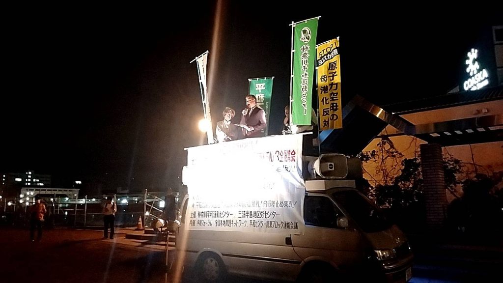 空母の母港化により、非核三原則に反する、核兵器持ち込み疑惑や原子力空母の動力源である原子炉の安全性に対する懸念をもたらし、空母艦載機の訓練による深刻な騒音被害や墜落事故の恐怖を地域住民に与え続けています。私たちはこのような事態を決して許してはならず、基地撤去を強く求めています。